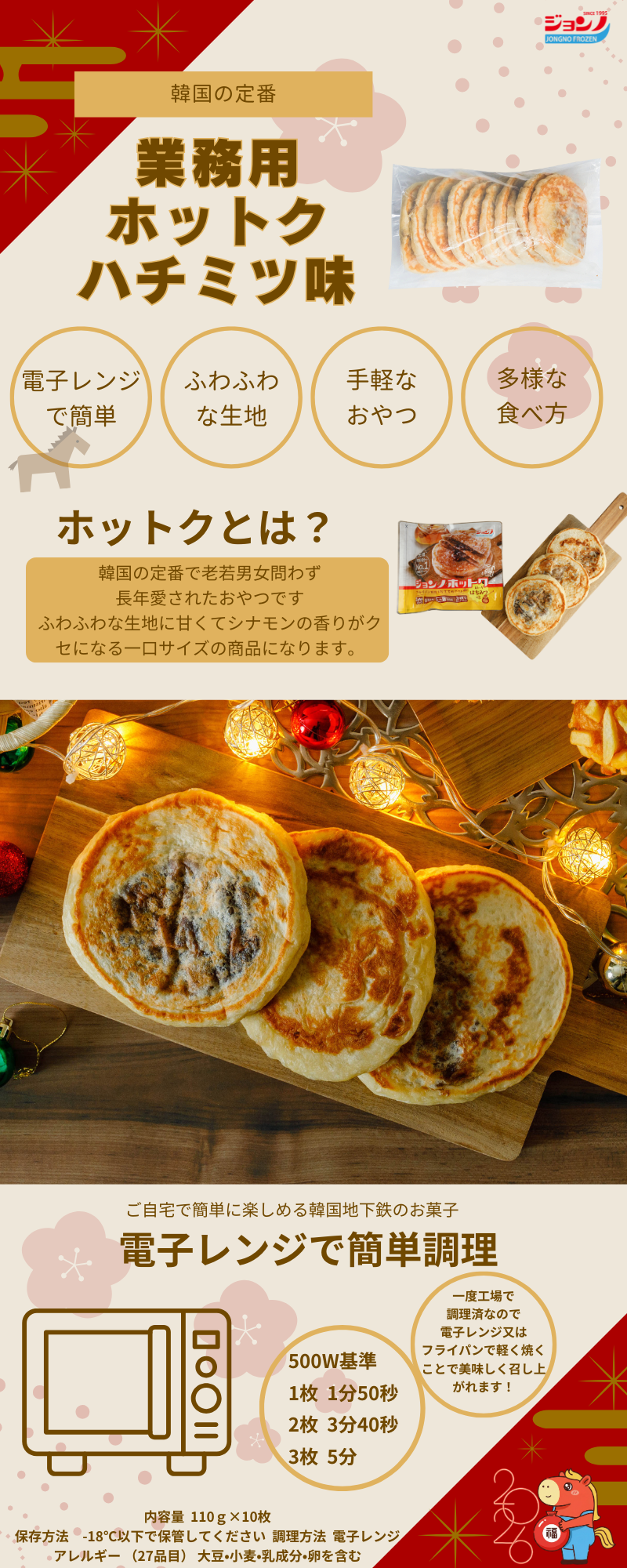 ジョンノホットクハチミツ味・業務用(110g×40個入り)・新大久保・韓国グルメ・お得・大容量 冷凍食品 ホトック ハットグ 簡単調理 スイーツ 韓国食品・韓国商品